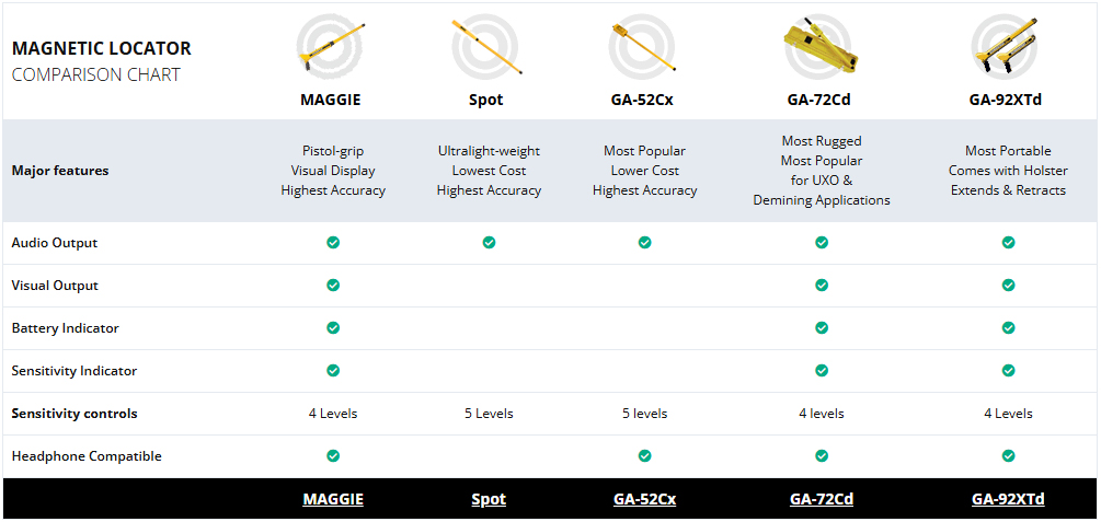 Kohteen magneettisuuteen reagoiva ammatti-ilmaisin. Maggie yhdistää kahden Schonstedtin lippulaivatuotteen parhaat ominaisuudet: GA-52Cx:n herkkyyden ja tarkkuuden sekä GA-92XT:n yhden käden käytön.