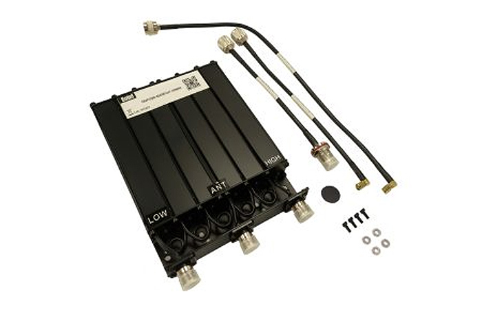 Toimitetaan koaksiaalikaapeleiden ja kiinnitysvaraosien kanssa.