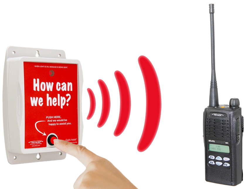 Quick Assist® -langaton kutsupainike on nopea ja helppo tapa parantaa asiakaspalvelua, hallita kustannuksia ja tehostaa henkilöstön toimintaa. Laite toimii itsenäisesti paristolla – ei vaadi johtoja, Wi-Fi-yhteyttä tai IT-infrastruktuuria.