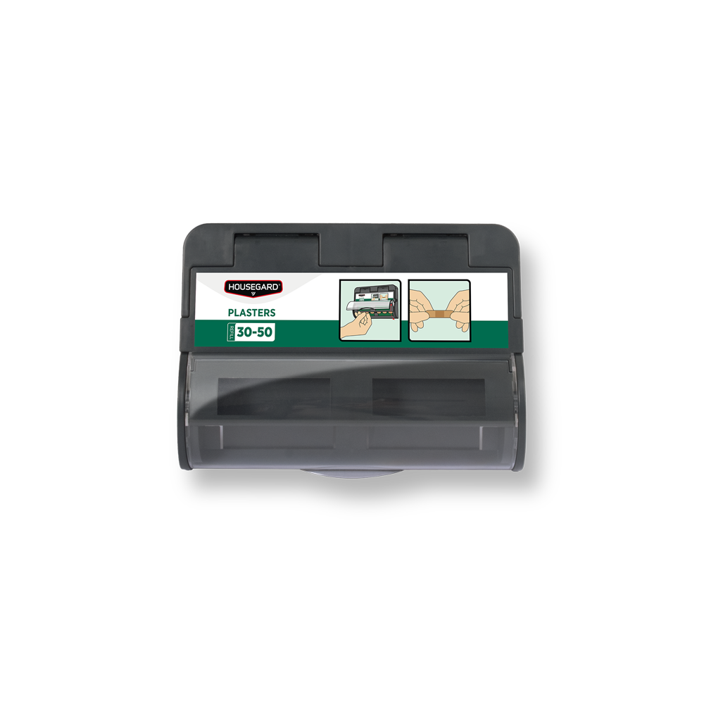 Laastariautomaatti työympäristöihin. Toimitetaan tyhjänä, jotta sopivat laastarit voidaan valita, kuten tekstiili-, vedenkestävät, detektoitavat tai jäljitettävät laastarit.